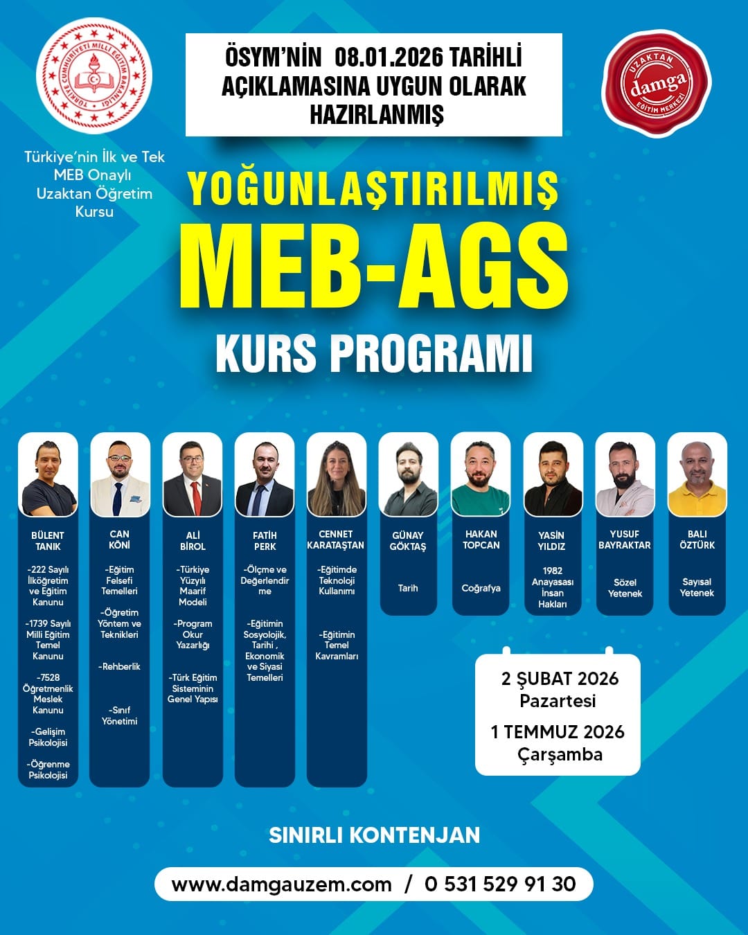 🚫 Kontenjan: Sınırlıdır.