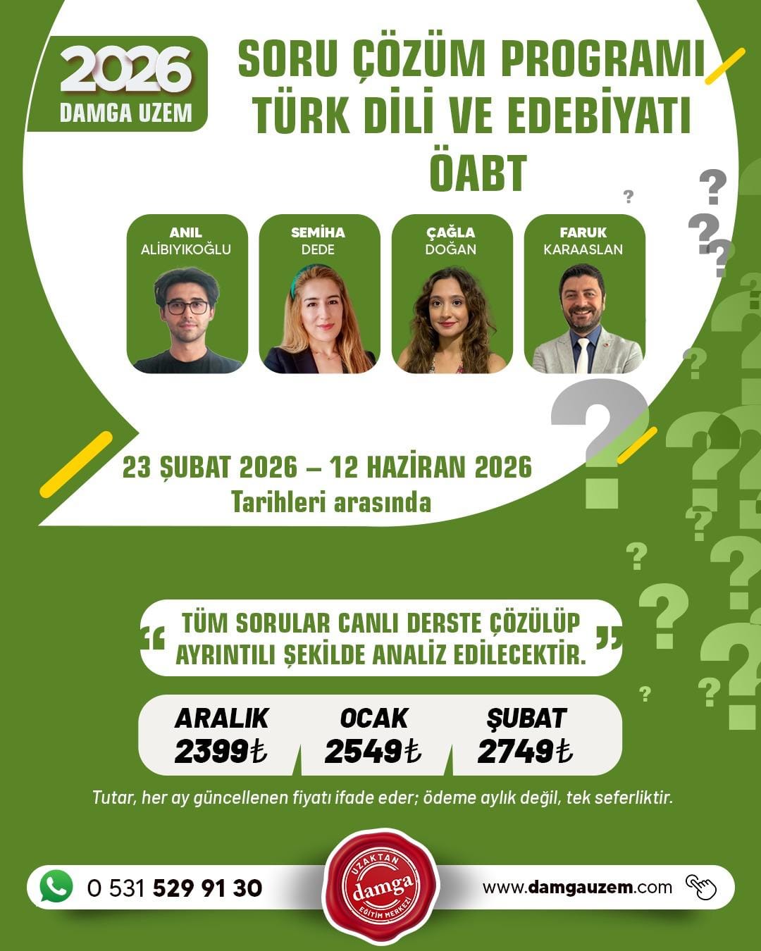 23 Şubat – 12 Haziran 2026 tarihleri arasında uzman eğitmenlerle yoğun bir soru çözüm programı başlıyor.